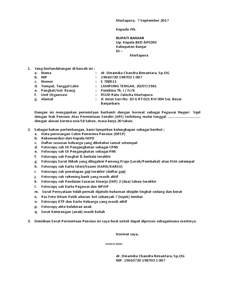 Contoh Surat Pengajuan Pensiun Dini / Pensiun Dini Menurut Undang Undang Asn Bkpsdm Barsel : Apakah sampai saat ini sudah bisa pengurusannya pak?